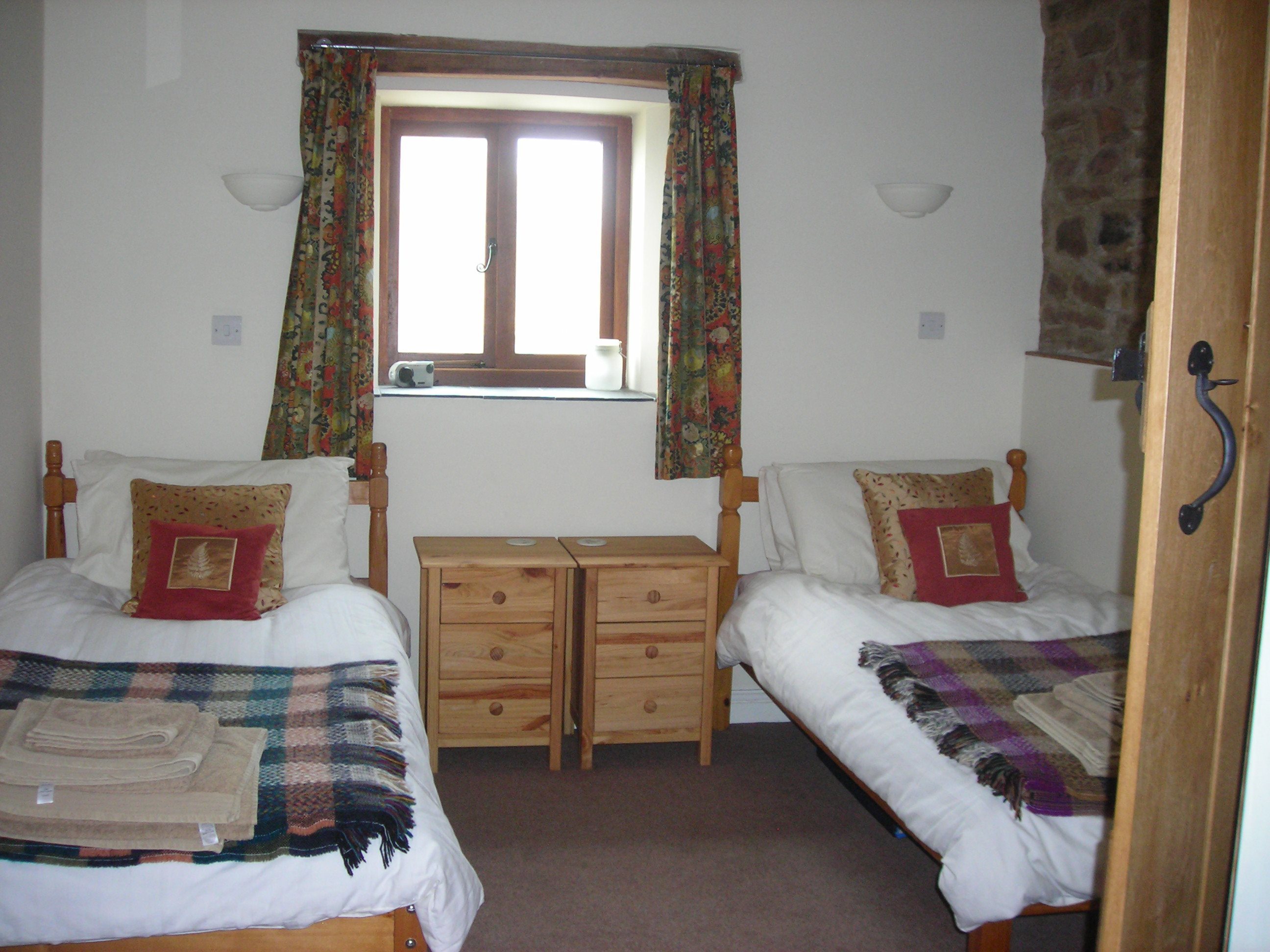 The twin has two single hand-made oak beds and en-suite with shower, WC, basin and heated towel rail. The room is spacious, light and airy with high ceilings and exposed beams and stonework. It has a radiator with thermostatic valves.